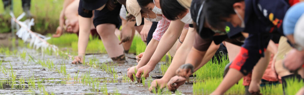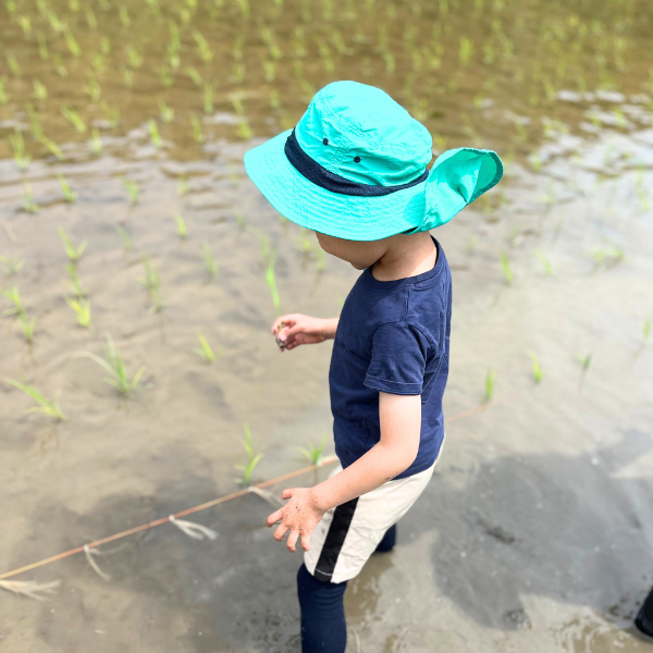 季節ごとに表情を変える田んぼは、最高の遊び場です。日差しを浴びて、風を感じる中… 泥のひんやりした心地よさ、お米の赤ちゃん(稲)の生命力を、全身で感じてください。
